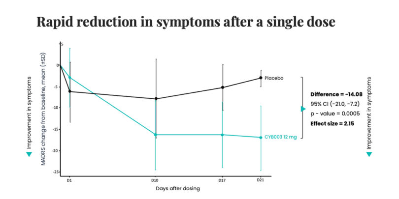 Schnelle und statistisch signifikante Verbesserung der Depressionssymptome nach einmaliger Verabreichung von CYB003:
